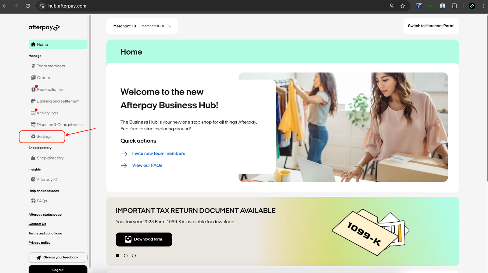 Log in to the Afterpay Business Hub
