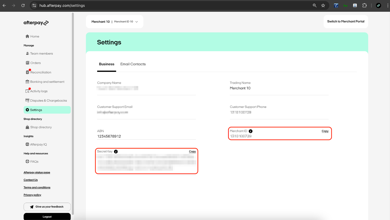 a. Under Settings, please find the section displaying your Merchant ID and Secret Key.
